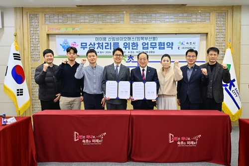 (속초=연합뉴스) 류호준 기자 = 강원 속초시는 시청 상황실에서 천일에너지와 '임목폐기물 재활용 무상 처리' 업무협약을 했다고 6일 밝혔다.