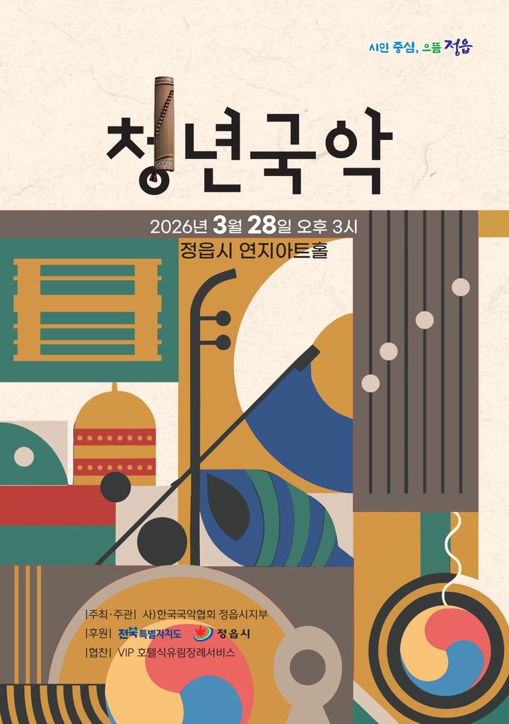 [정읍=뉴시스] 김종효 기자 = 한국국악협회 전북 정읍시지부는 전통음악을 전공한 청년 예술인들의 활동 기반 마련하고자 오는 28일 오후 3시 정읍 연지아트홀에서 청년국악 공연을 펼친다고 24일 밝혔다.