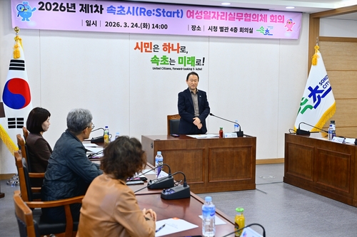 (속초=연합뉴스) 류호준 기자 = 강원 속초시는 시청 별관 회의실에서 여성 일자리 실무협의체 회의와 여성친화도시 안전 부서 T/F 추진단 회의를 열고 여성친화도시 조성을 위한 주요 사업 추진 방향을 논의했다고 24일 밝혔다.